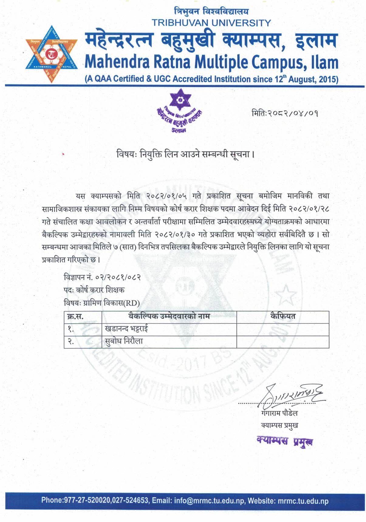 शिक्षक आवश्यकता(तेस्रो पटक प्रकाशित) सम्बन्धि सूचन...