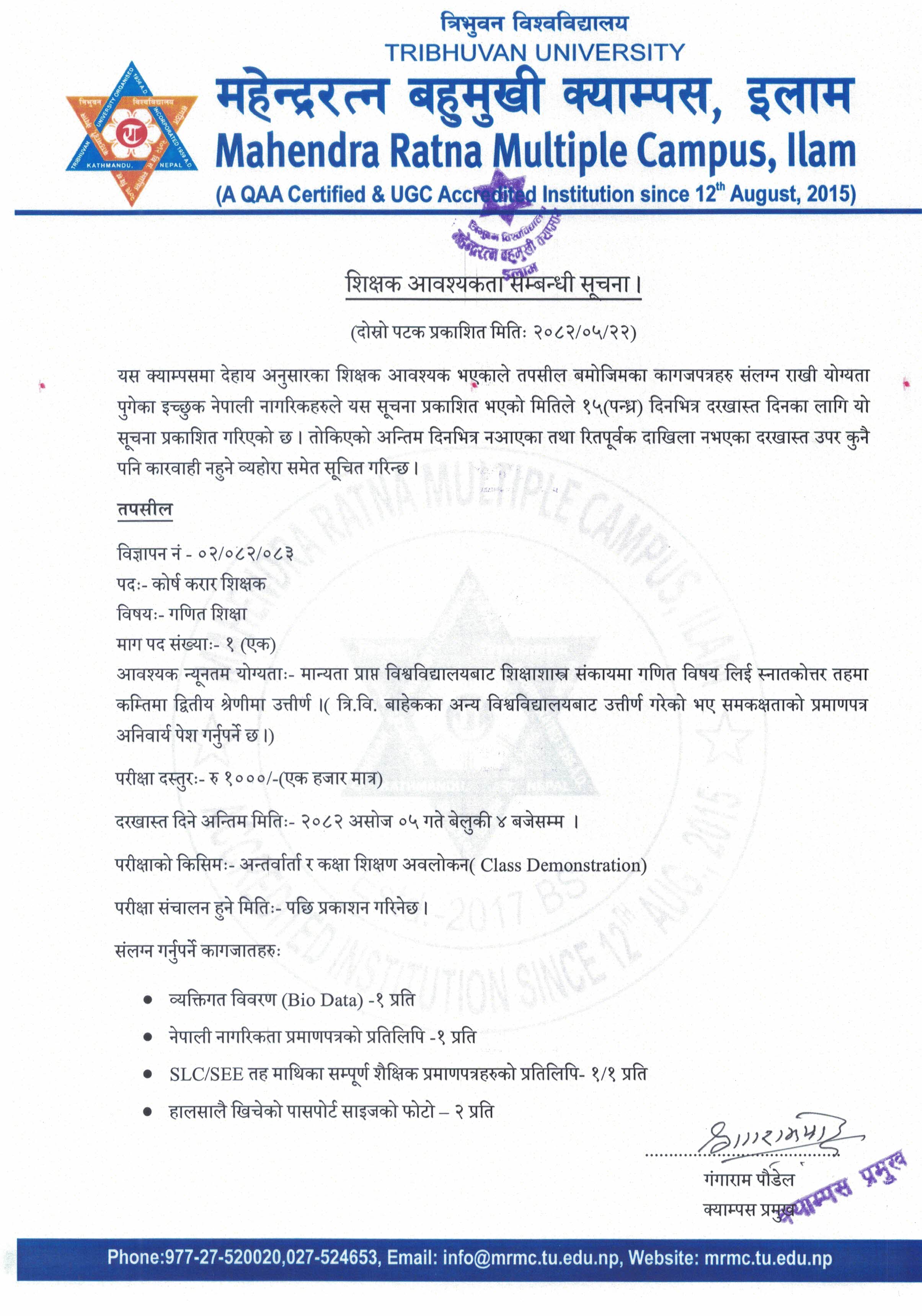 शिक्षक आवश्यकता (चौथो पटक) सम्बन्धि सूचना ।।