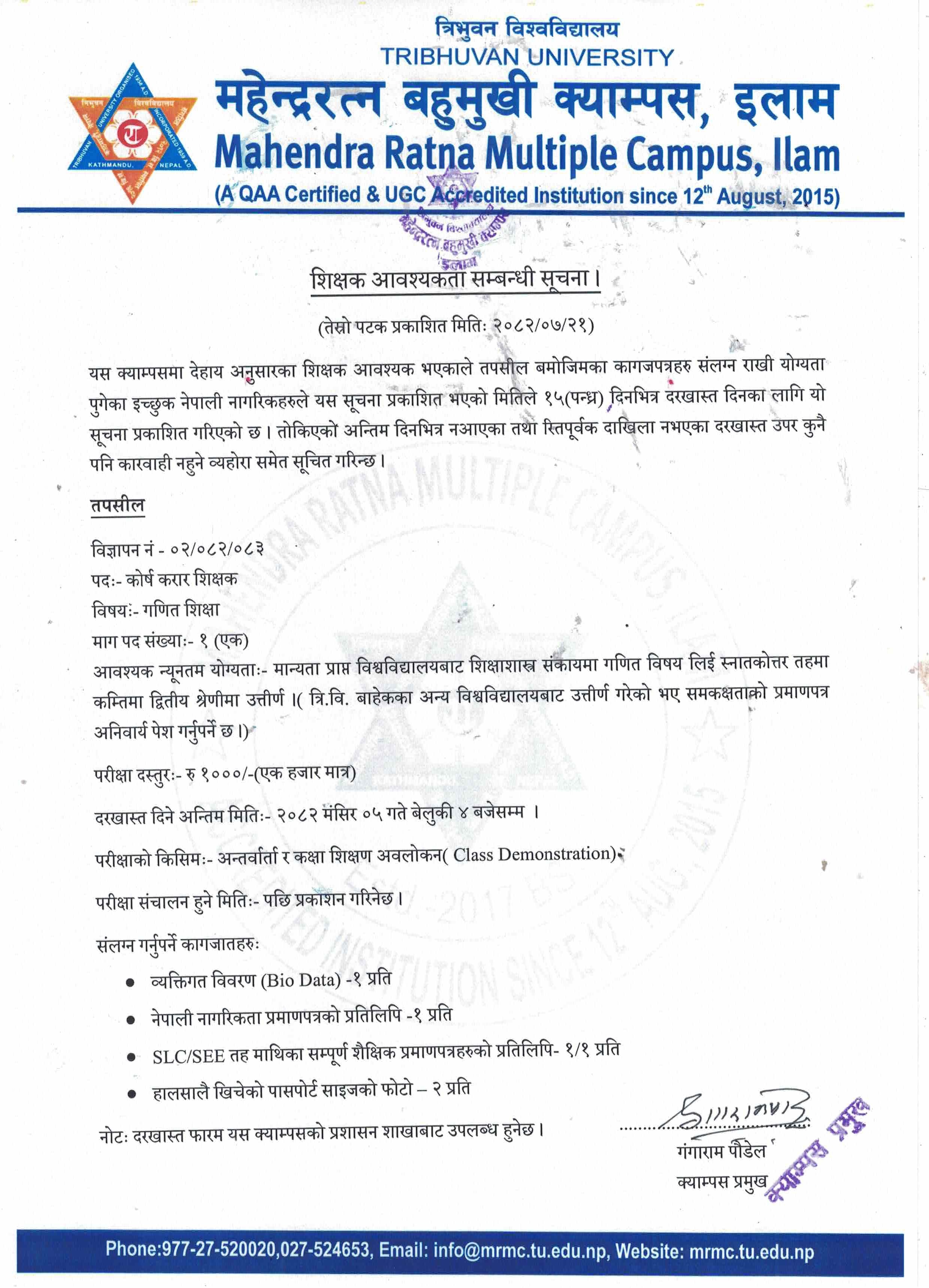 शिक्षक आवश्यकता (चौथो पटक) सम्बन्धि सूचना ।।